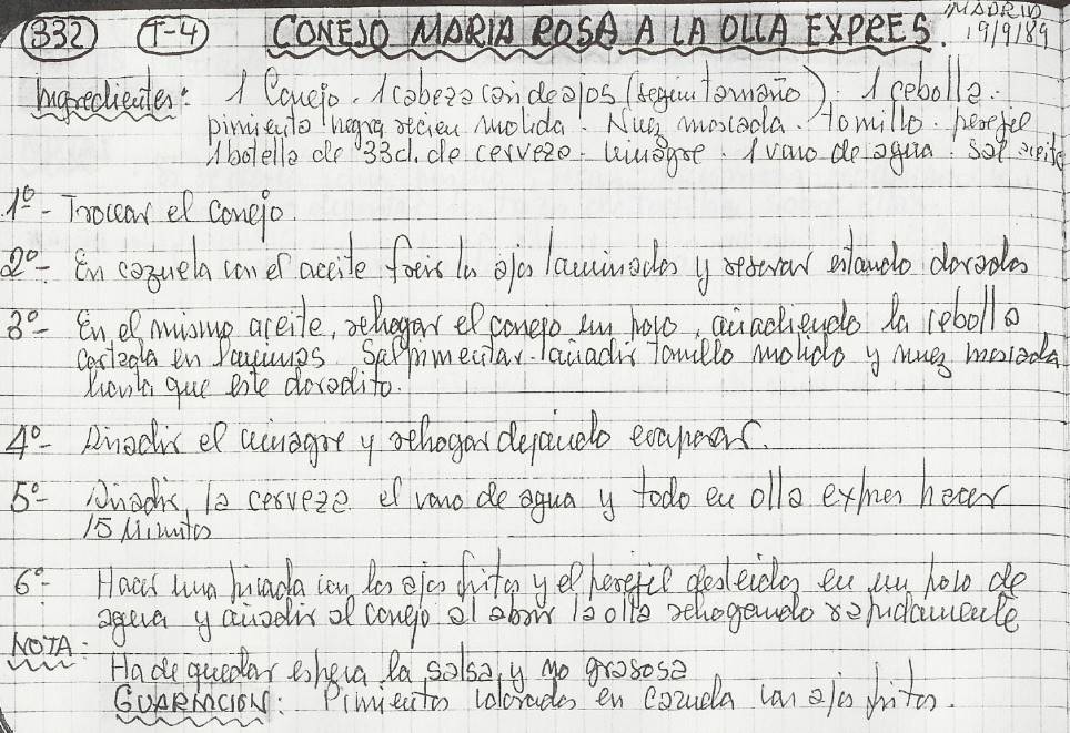 Conejo Mª Rosa en olla expres -Madrid 89- (T4-332)