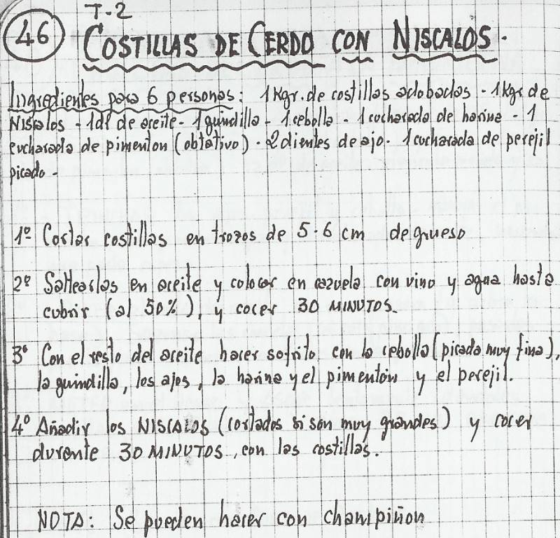 Costillas de cerdo con níscalos (T2-46)