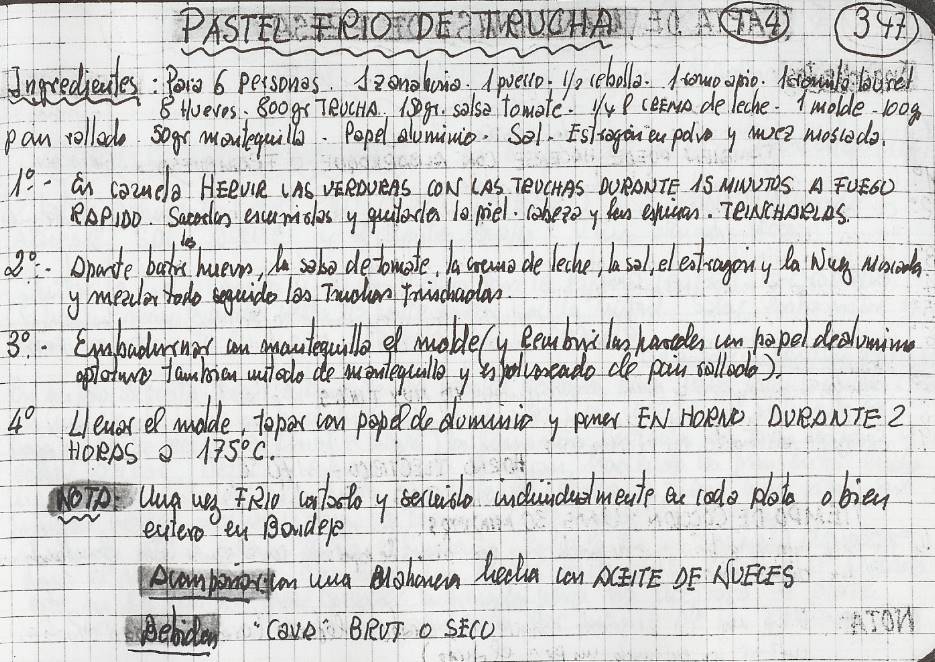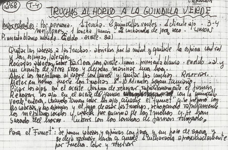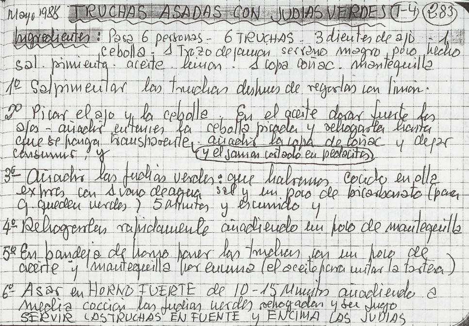 Truchas asadas con judias verdes -mayo 88- (T4-283)
